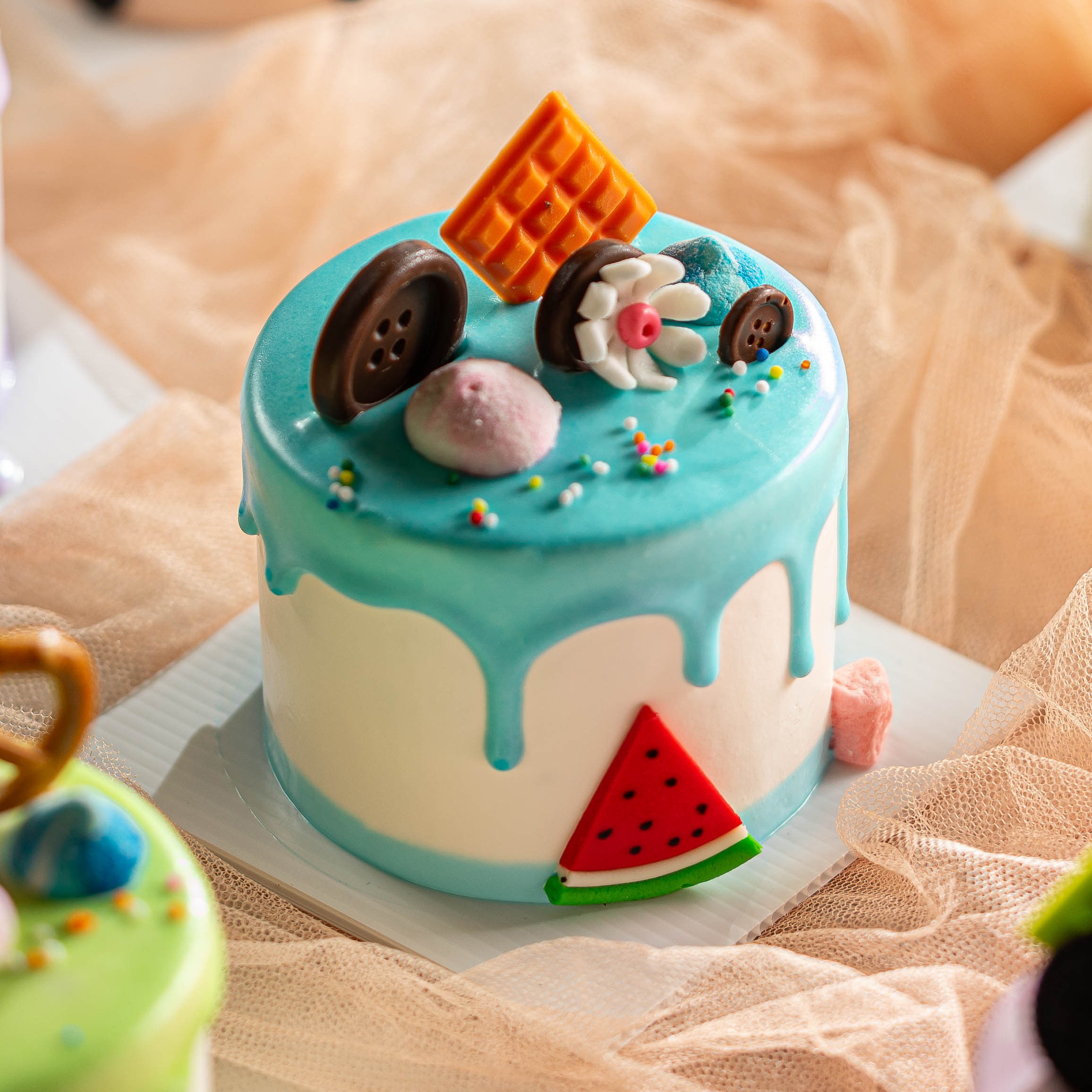 Bolu Blackforest dengan lapisan selai Strawberry dan Cream Vanila.