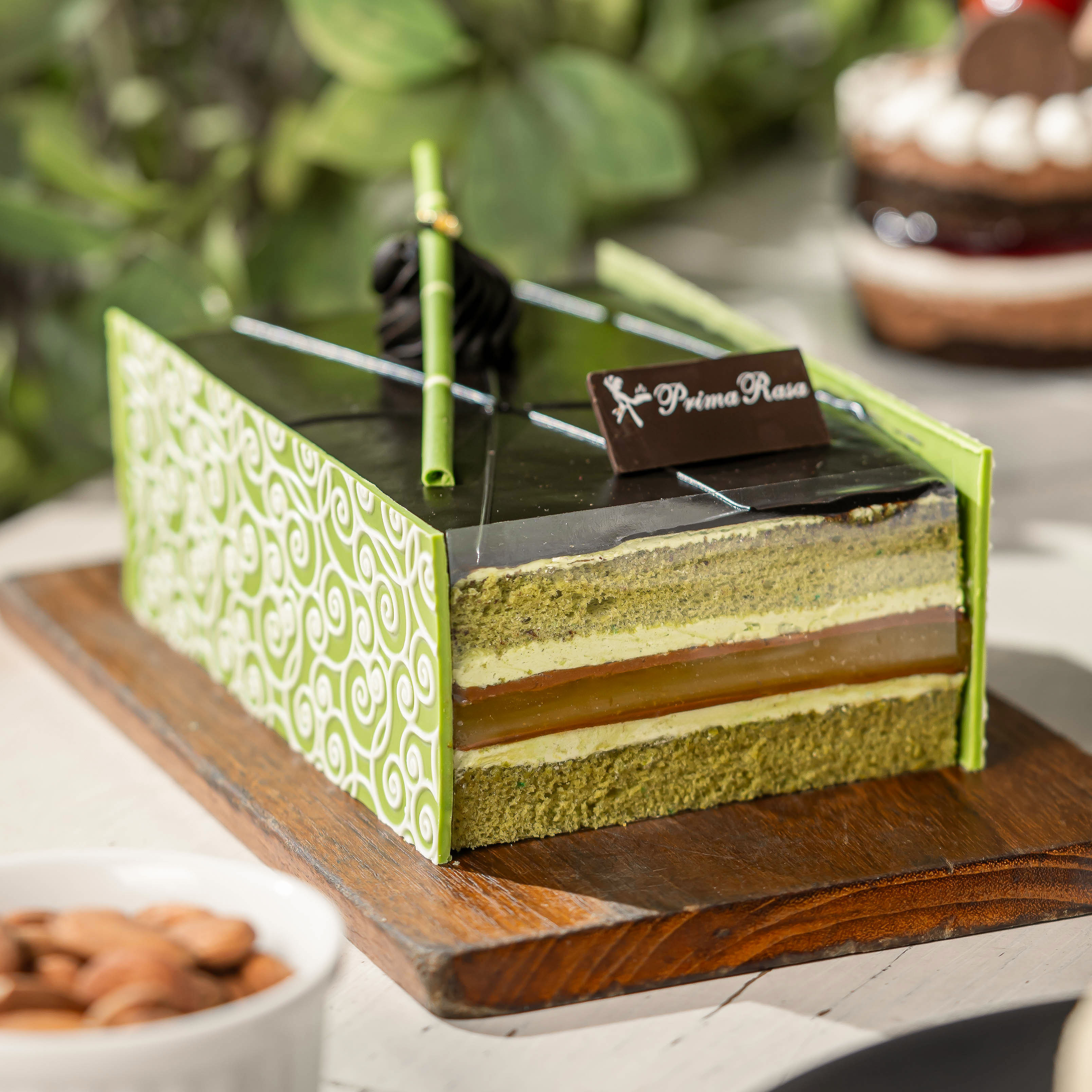 Bolu Greentea dengan Chocolate Ganache, Mango Jelly dan Chocolate Greentea Compound.