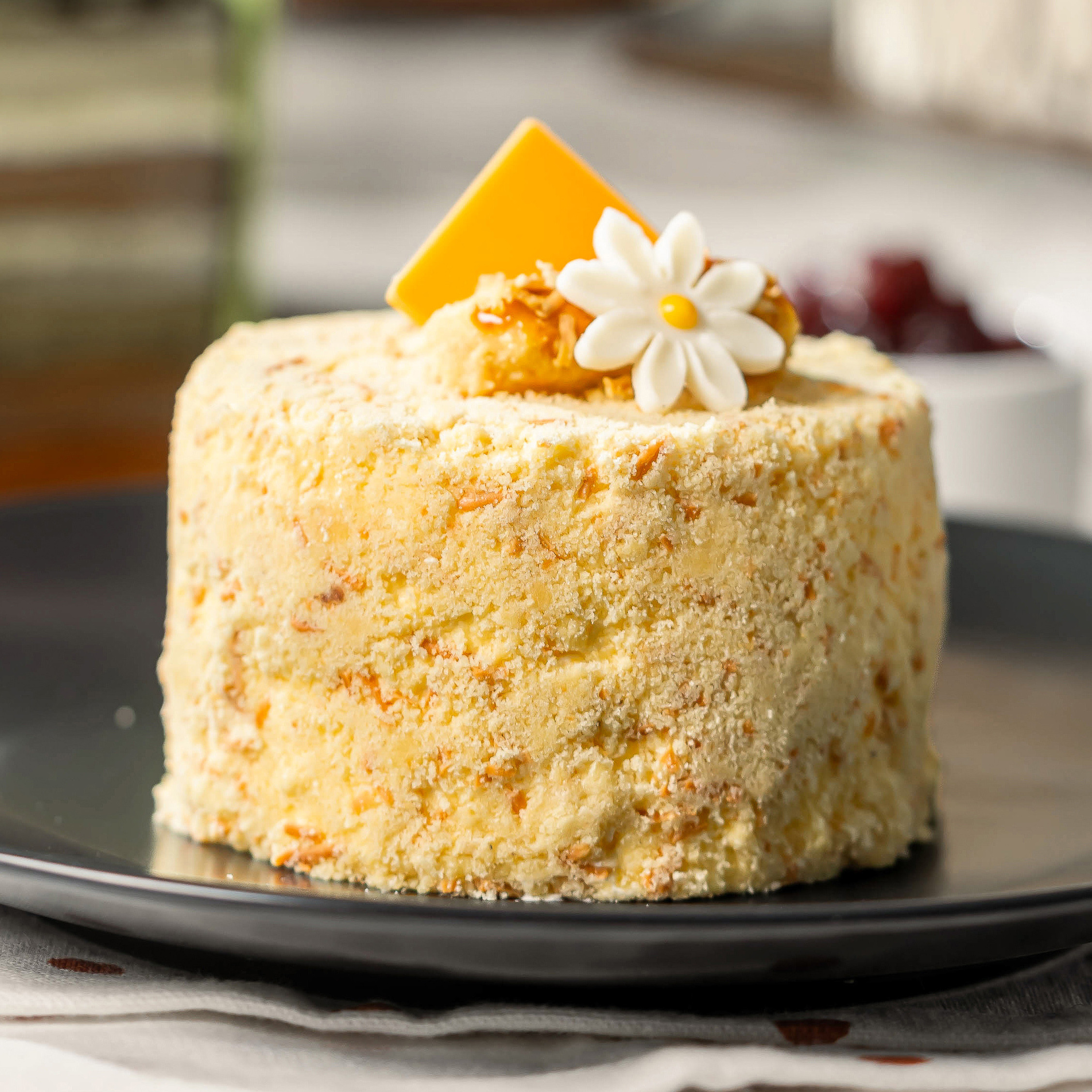 Bolu Keju dengan Cheese Butter Cream, Cheese Crumble dan topping Kaastangel Cookies.