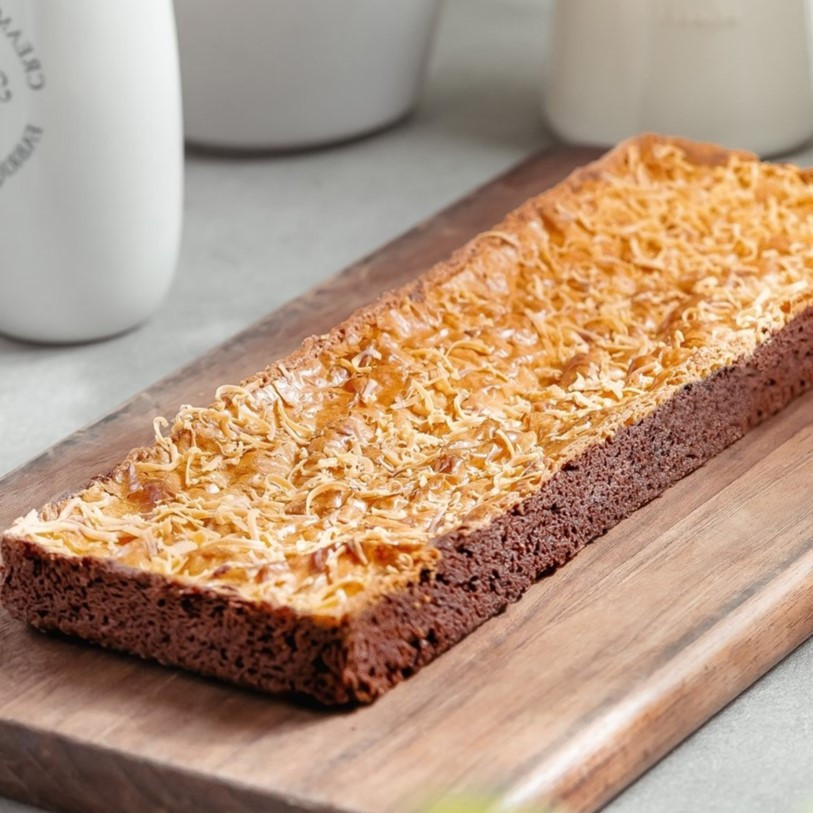Variasi brownies panggang dengan topping ketan hitam yang lezat, menambahkan sentuhan rasa dan tekstur yang unik