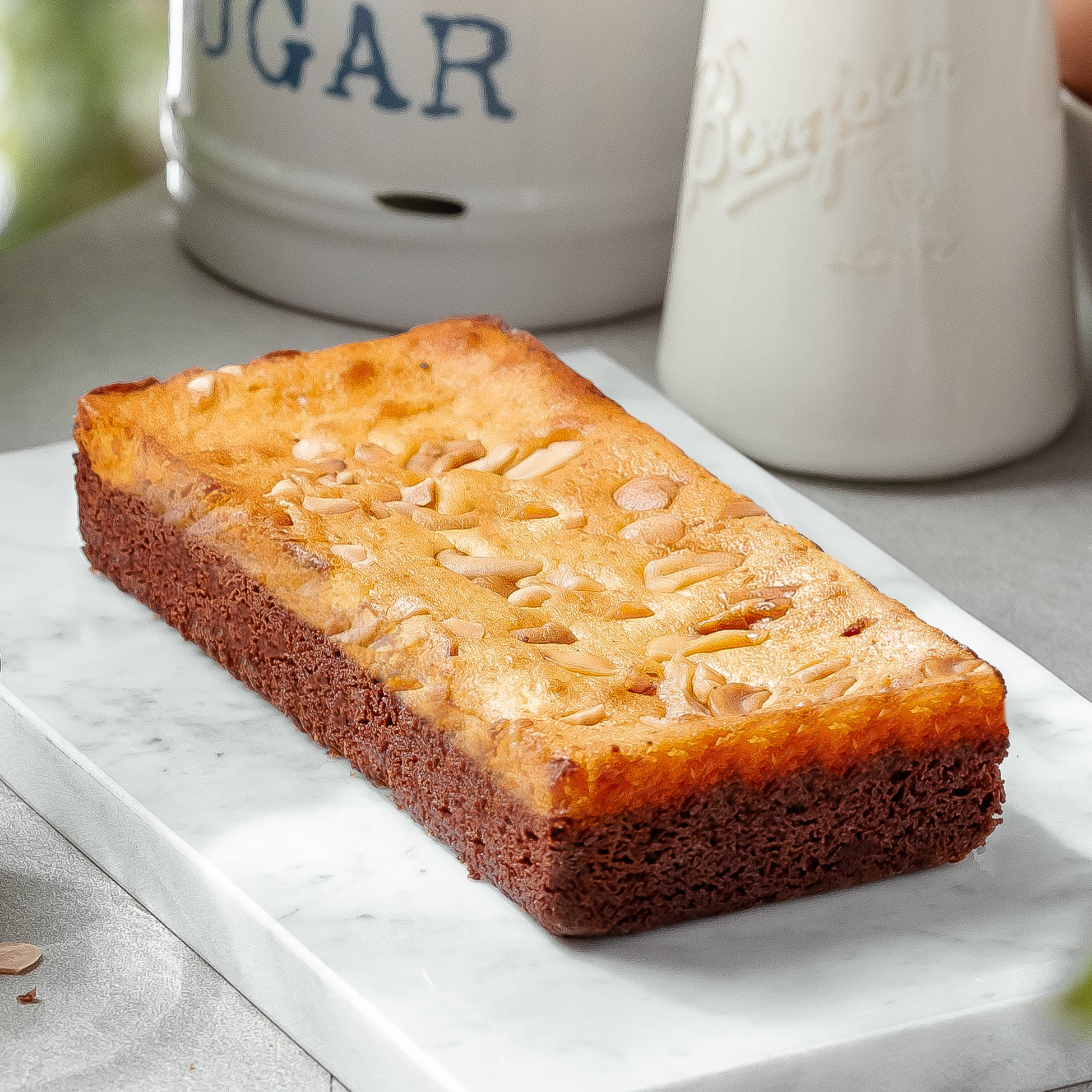 Variasi brownies panggang dengan perpaduan rasa coklat yang kaya dan keju yang creamy, menciptakan harmoni rasa yang unik dan lezat