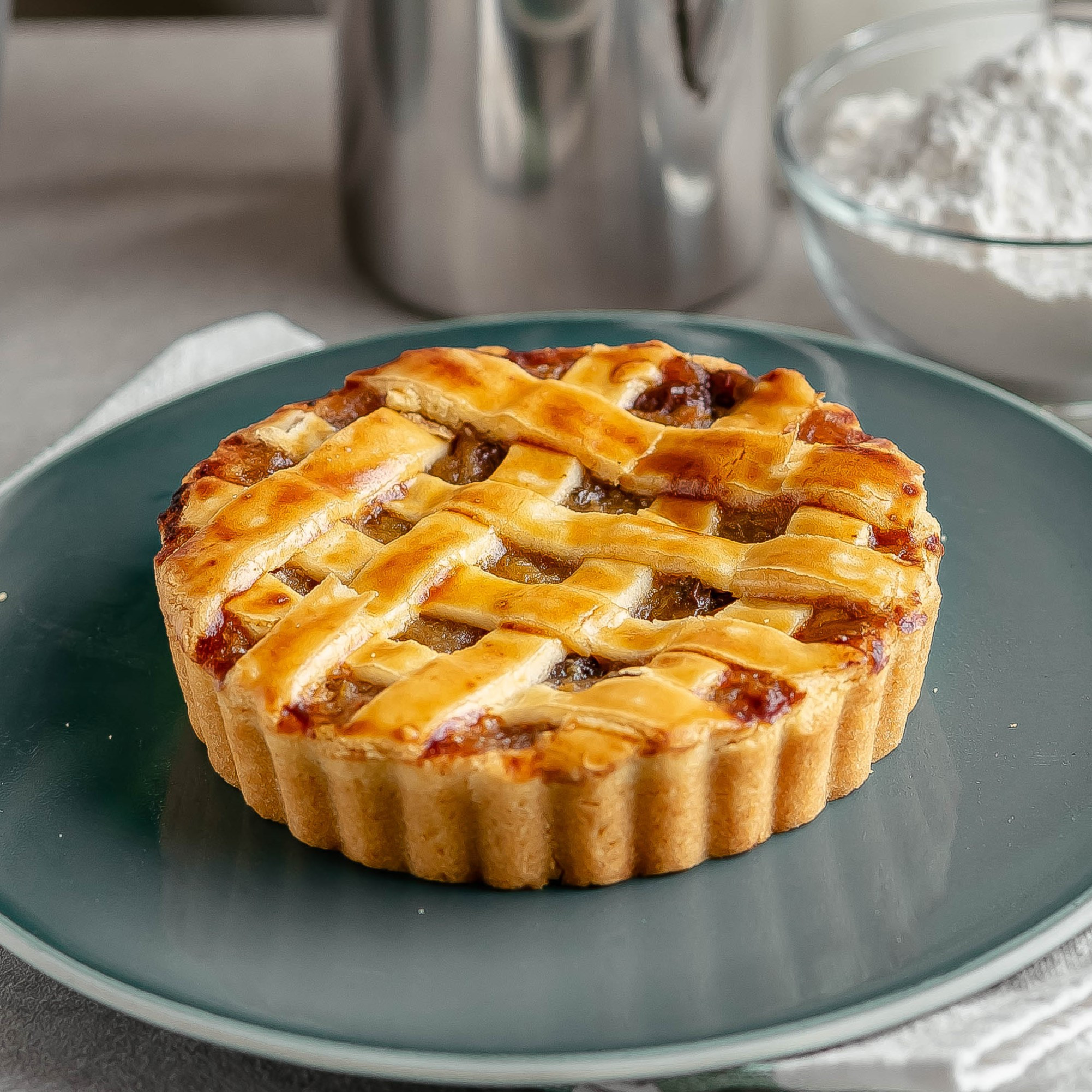 Kue klasik yang lezat dan menggugah selera, terbuat dari apel yang manis dan renyah, dibungkus dengan kulit pastry yang renyah dan gurih. Aroma kayu manis dan pala yang khas, membuat Apple Pie ini menjadi hidangan yang sangat spesial dan disukai banyak orang