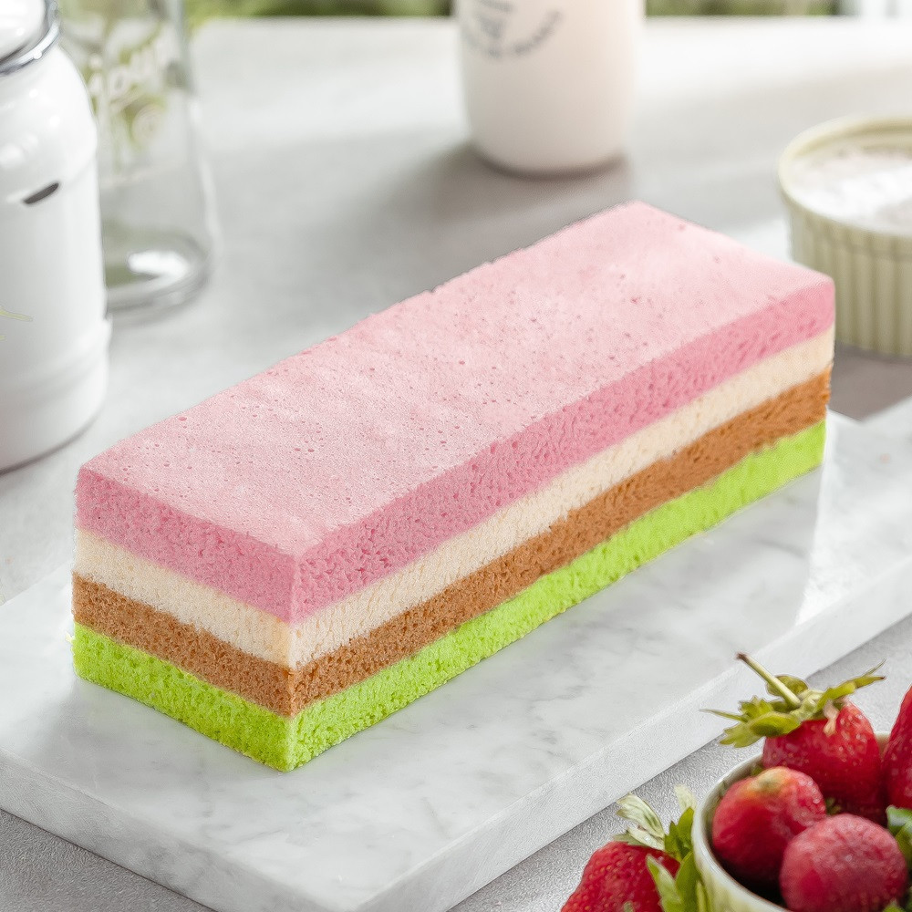 Kue yang cerah dan menarik dengan warna-warna pelangi yang cantik. Tekstur yang lembut dan rasa yang manis, membuat Bolu Pelangi menjadi dessert yang sangat spesial dan Instagramable